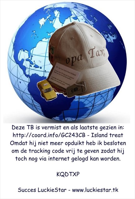 Deze TB is sinds 18-10-2012 vermist en kan nu via deze site of via internet gelogd worden.Caches geplaatst door LuckieStar
